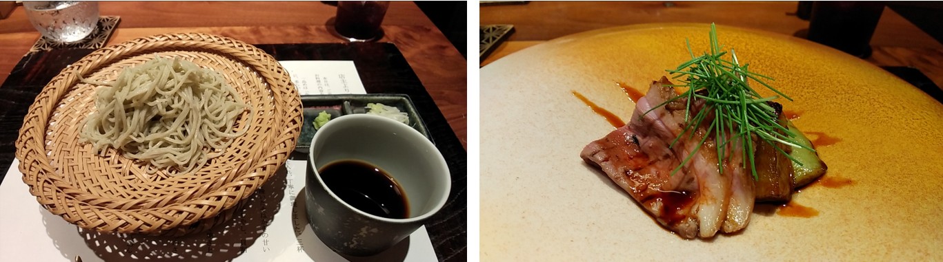 마무리로 드시는 메밀국수는 군마현 아카기산의 새 메밀로 만든 수제 100% 메밀국수입니다.