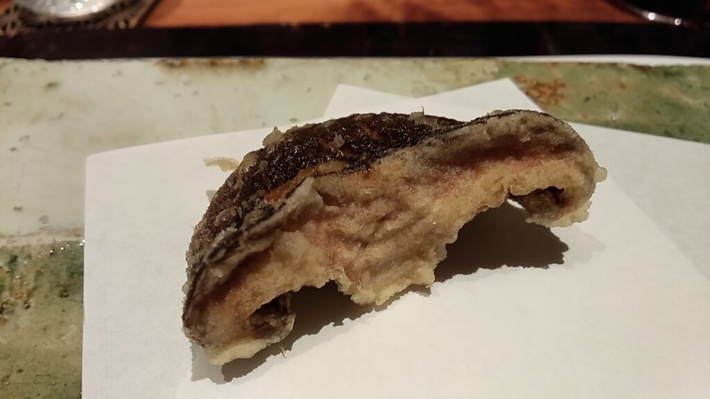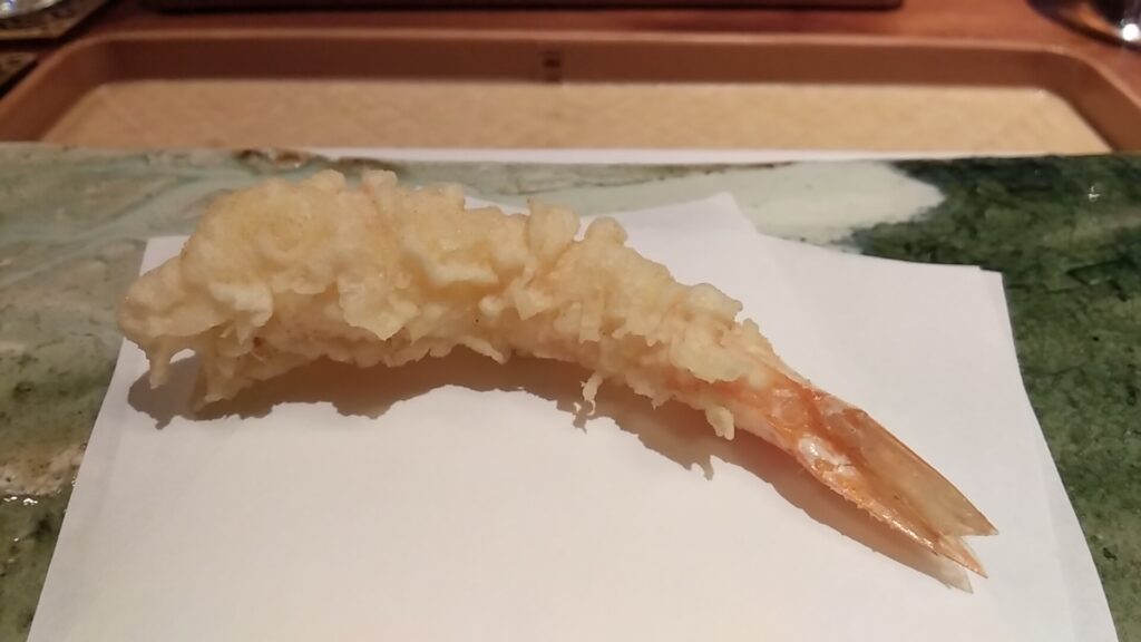 이날의 튀김은 표고버섯, 고구마, 천연 대하 세 가지였습니다.