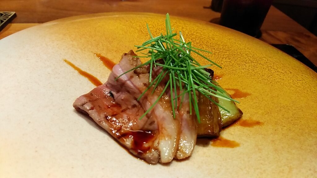 오이타현산 브랜드 계란 ‘란왕’으로 만든 계란찜에 부드럽게 조린 소힘줄을 더했습니다.